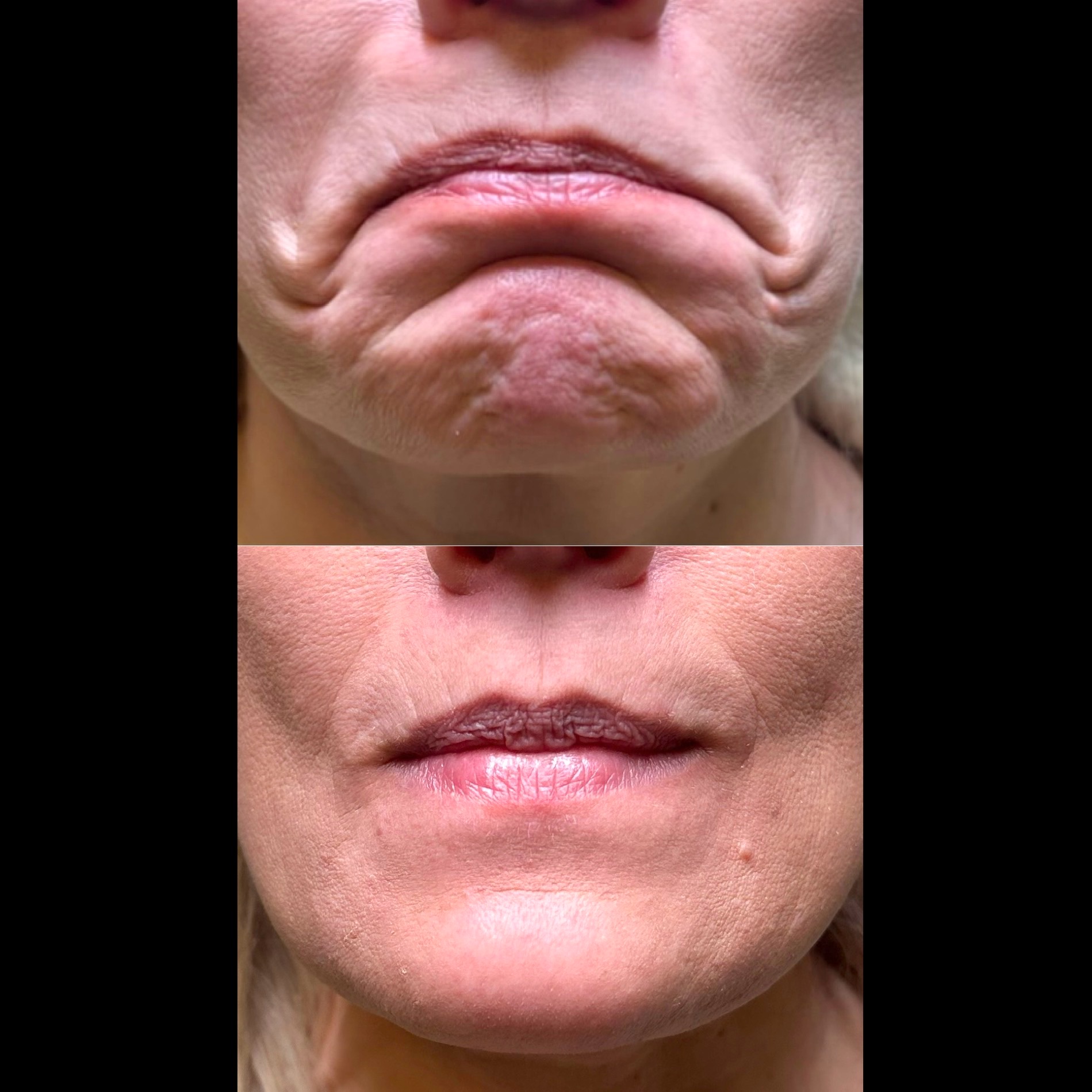 - En övergående svullnad, rodnad, ömhet samt lite kliande känsla eller blåmärke kring injektionsstället kan uppstå efter behandlingen. Den avtar vanligtvis inom några dagar. Detta gäller för både rynkbehandlingar med botox och fillers.